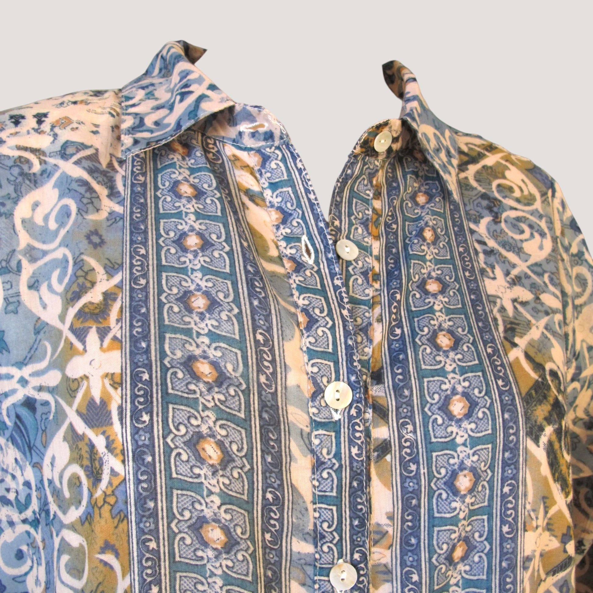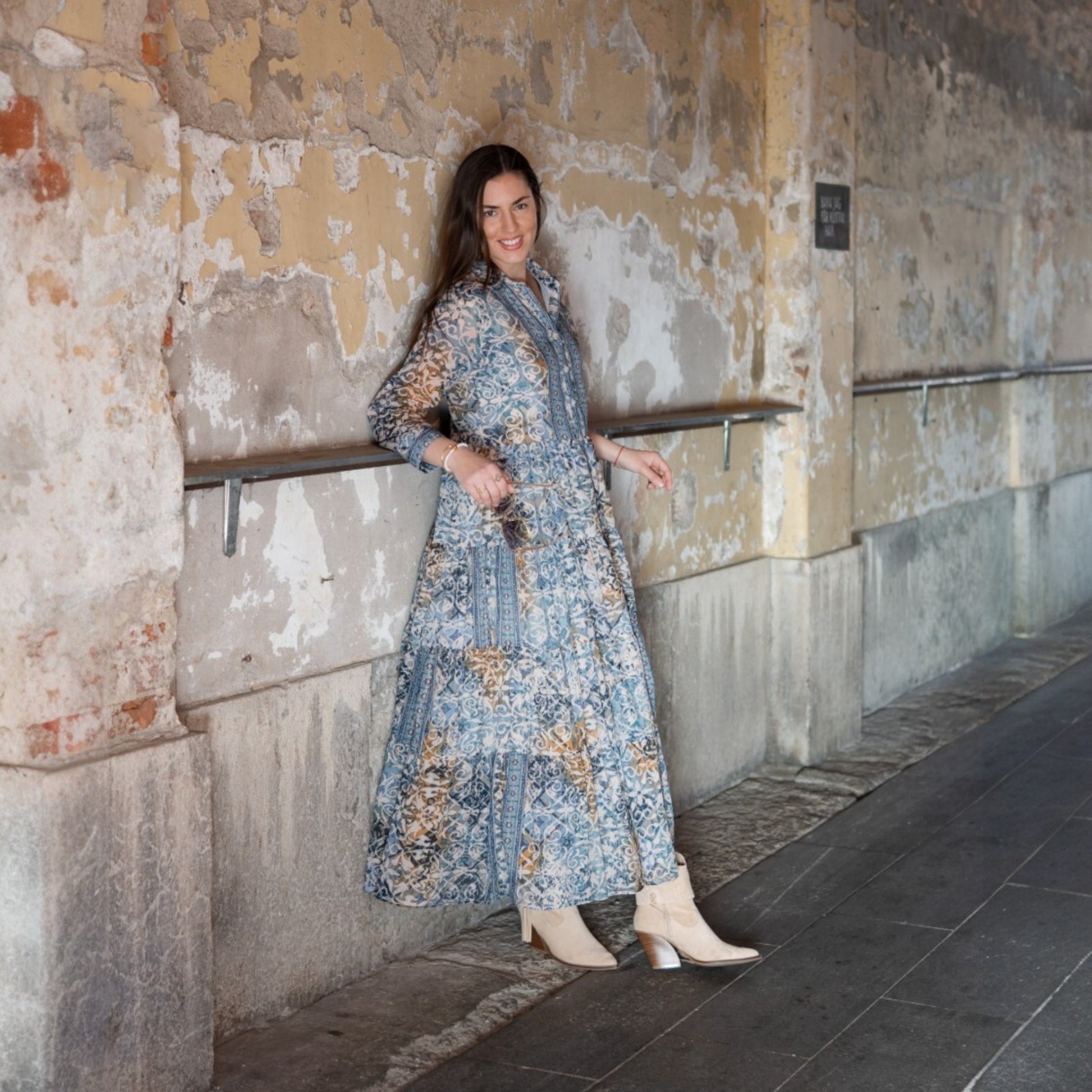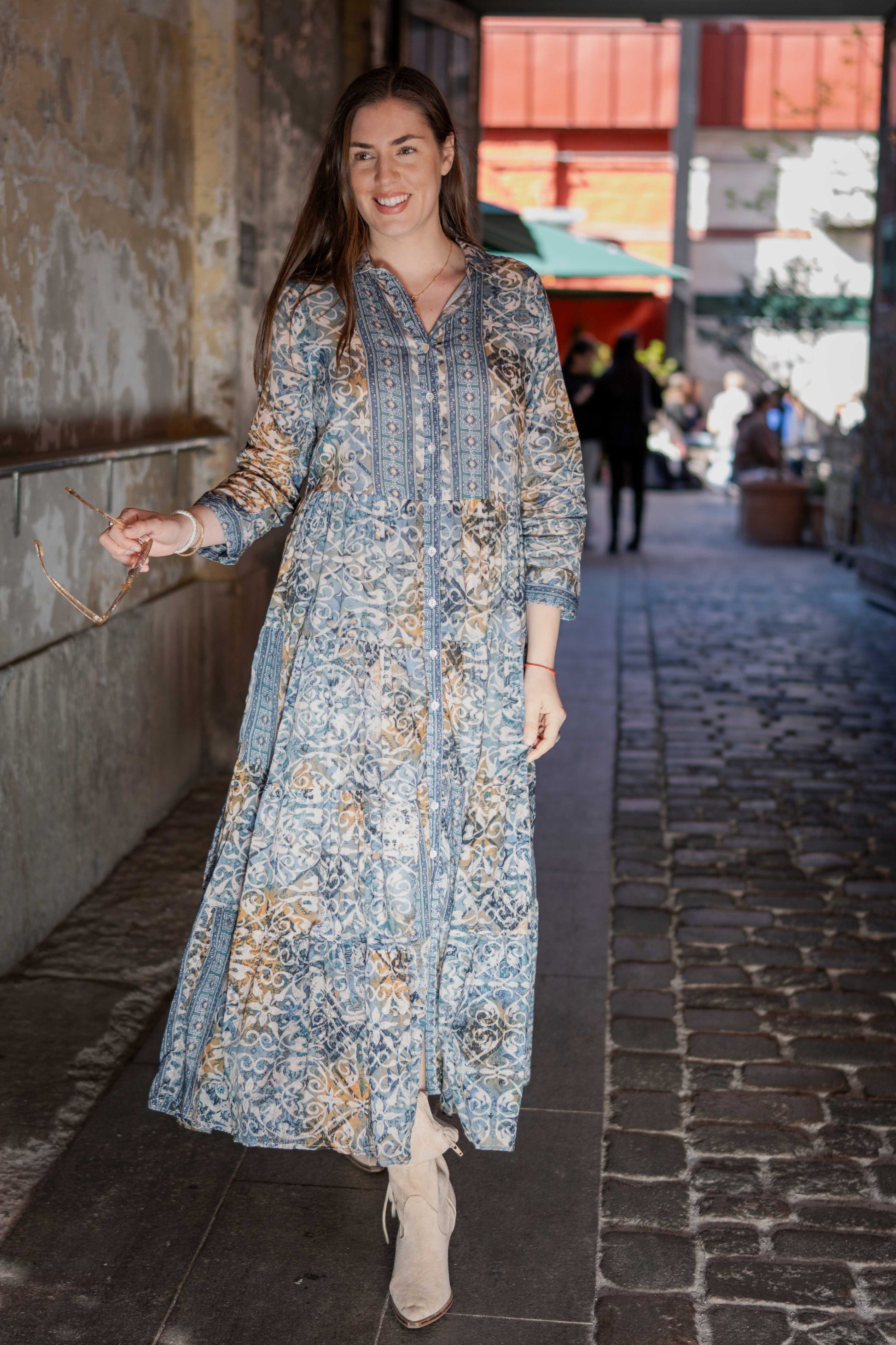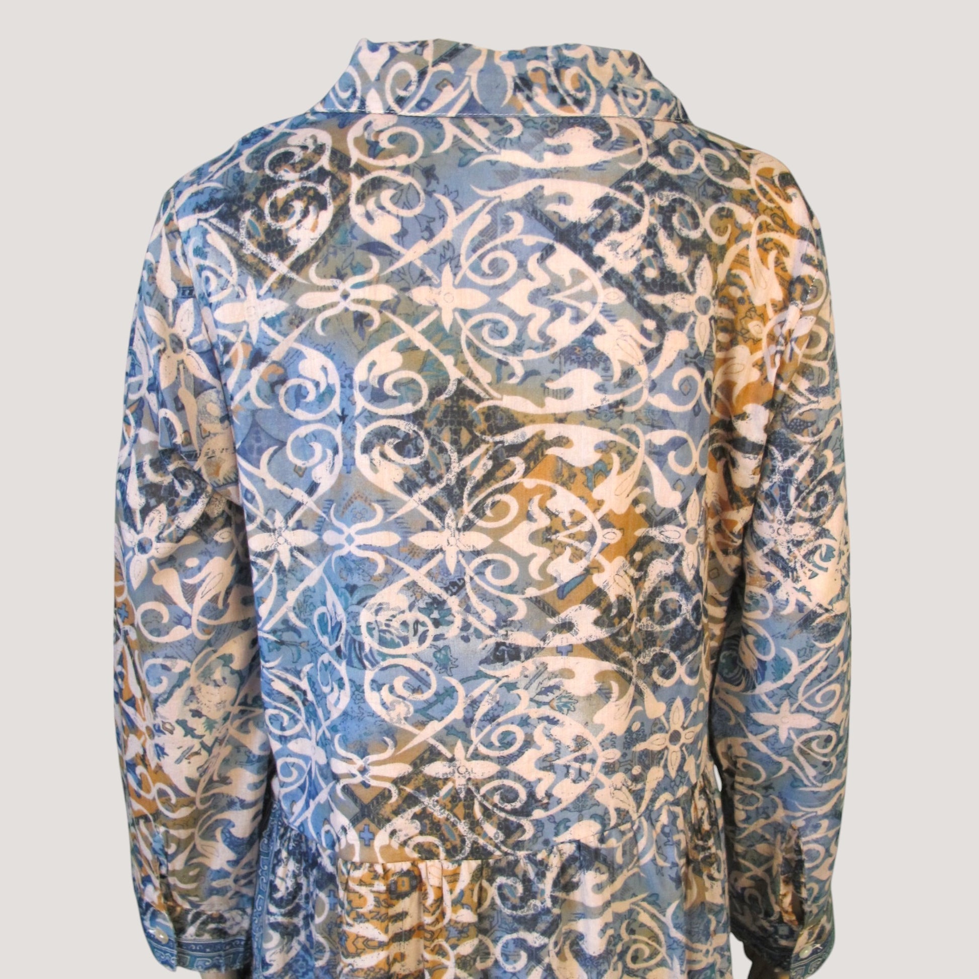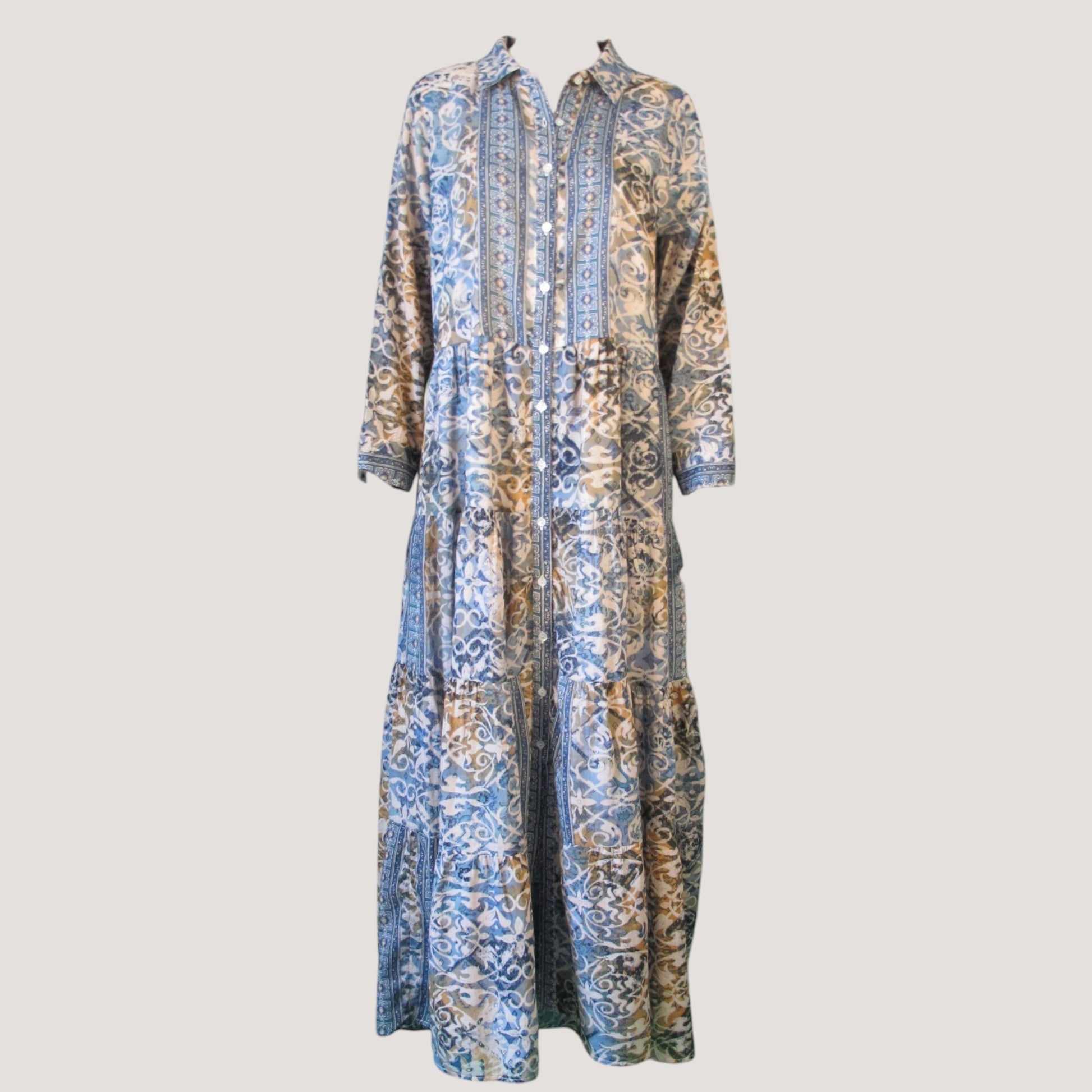 Fantastisk mönstrad klänning i bomull, knappar framtill hela vägen ner.