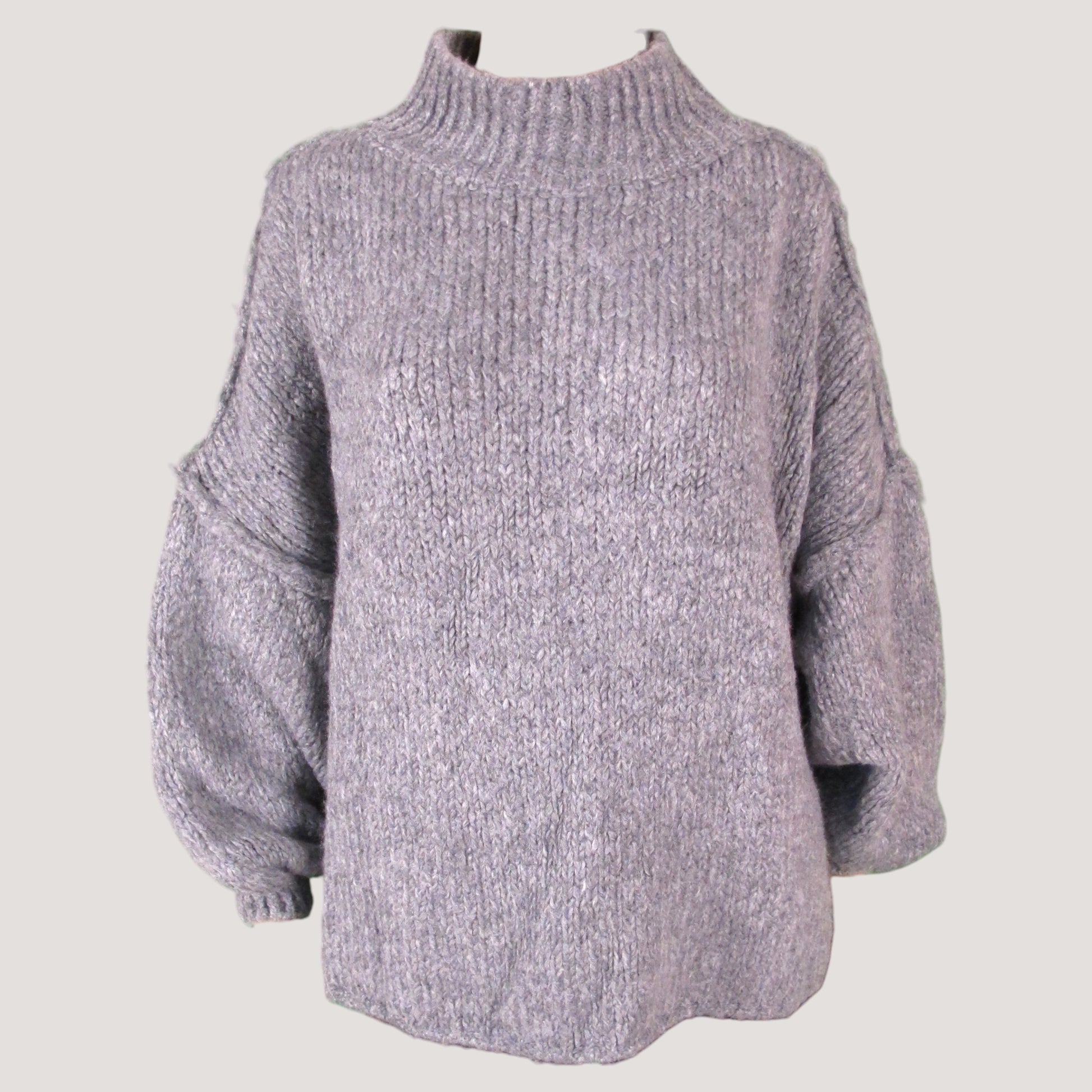 Stickad tröja i oversize modell med en liten krage och söm på arm.