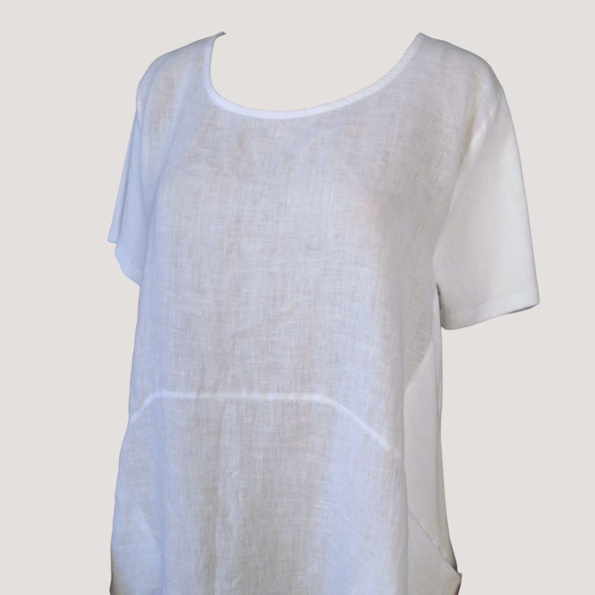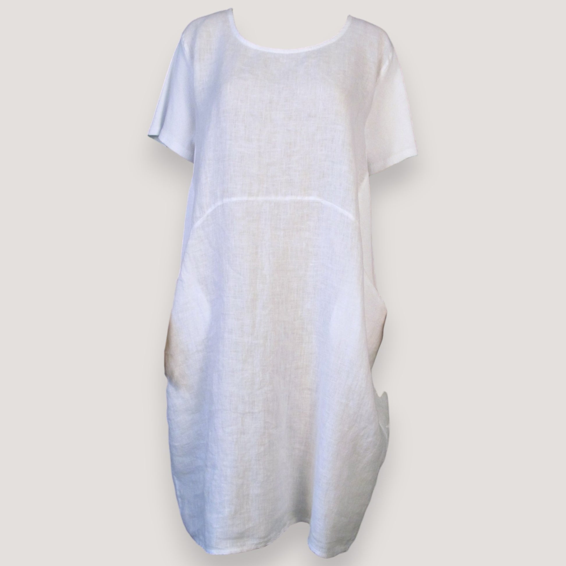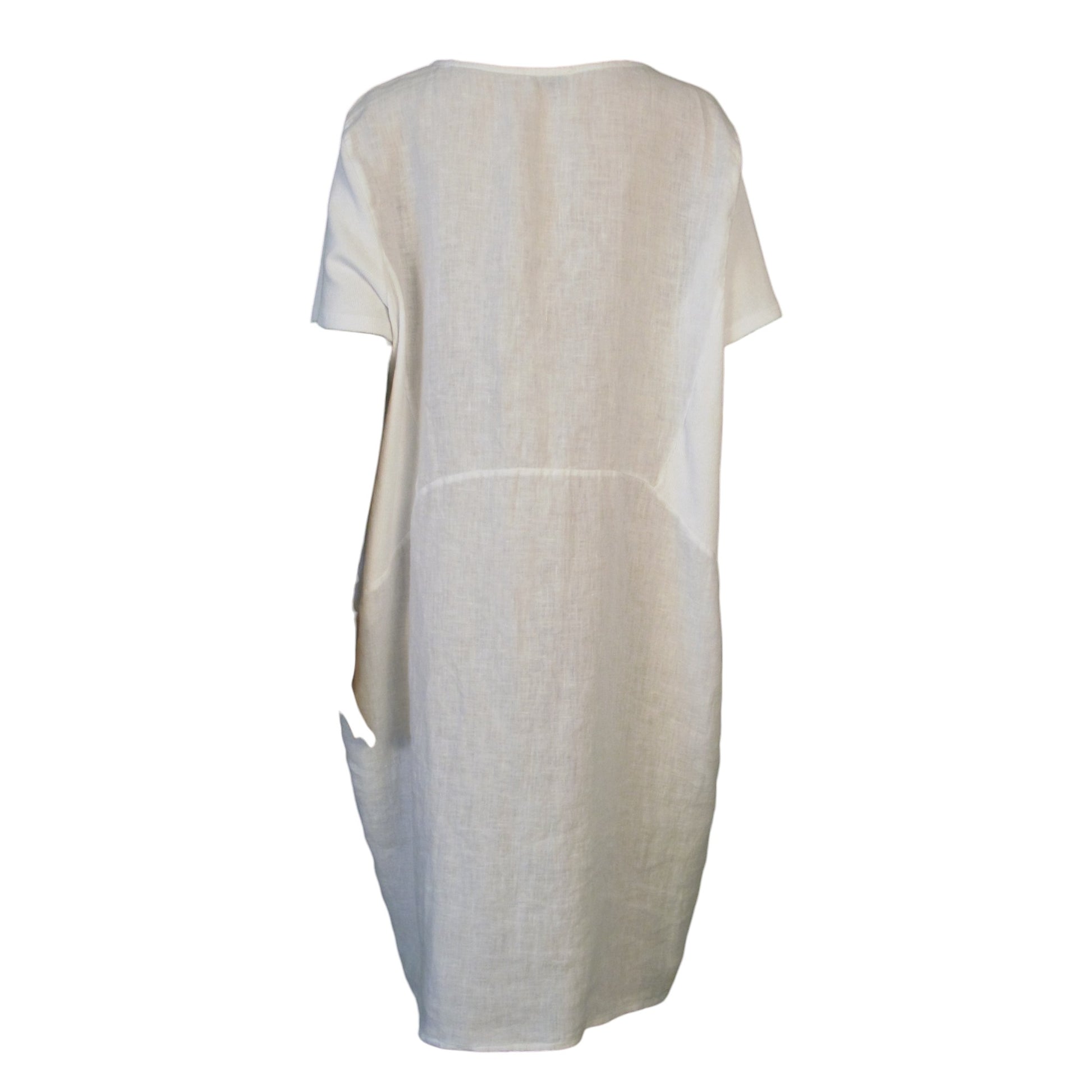 Linne klänning med skurning under bysten och en bomulls smock i sidan för fin passform. Fickor på båda sidorna och kort arm.