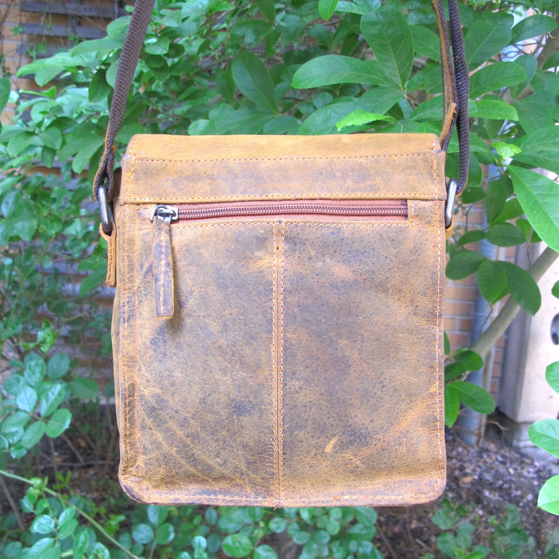 Axelrems väska med flera fack inuti samt ett fack med på baksidan med dragkedja.