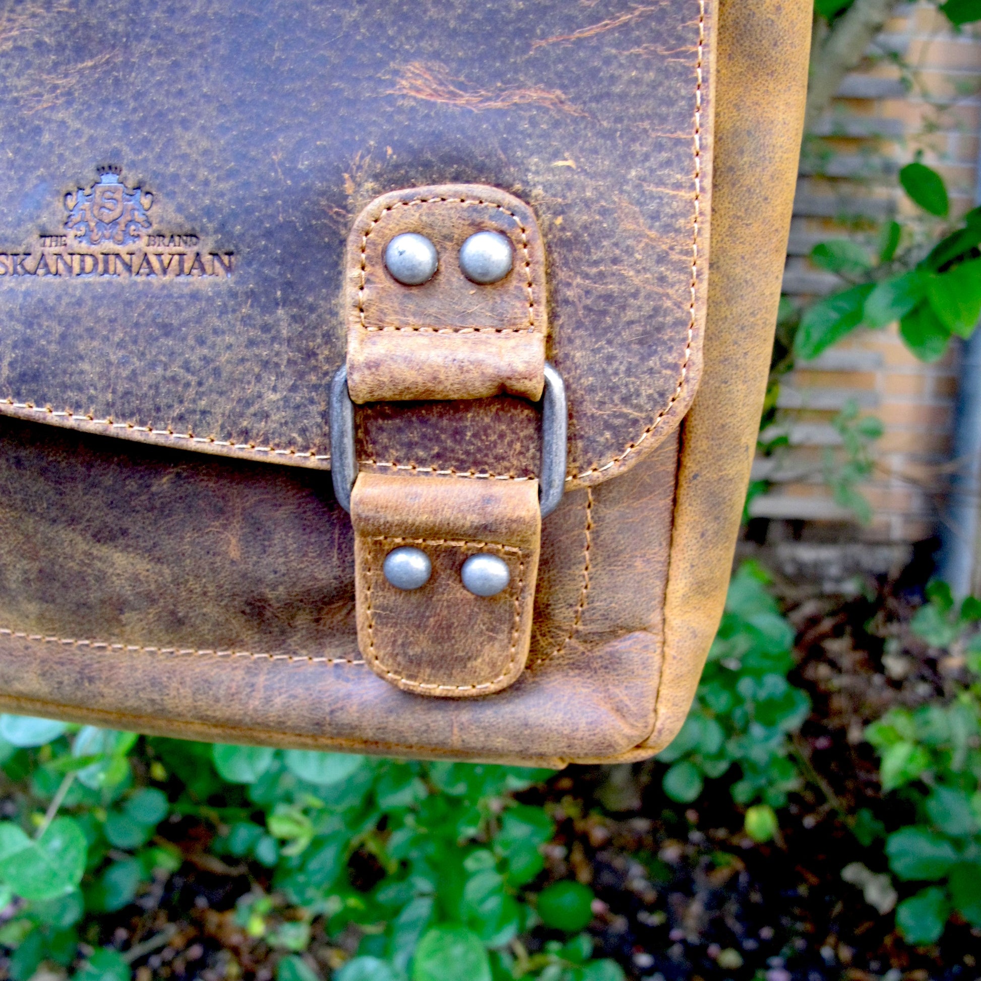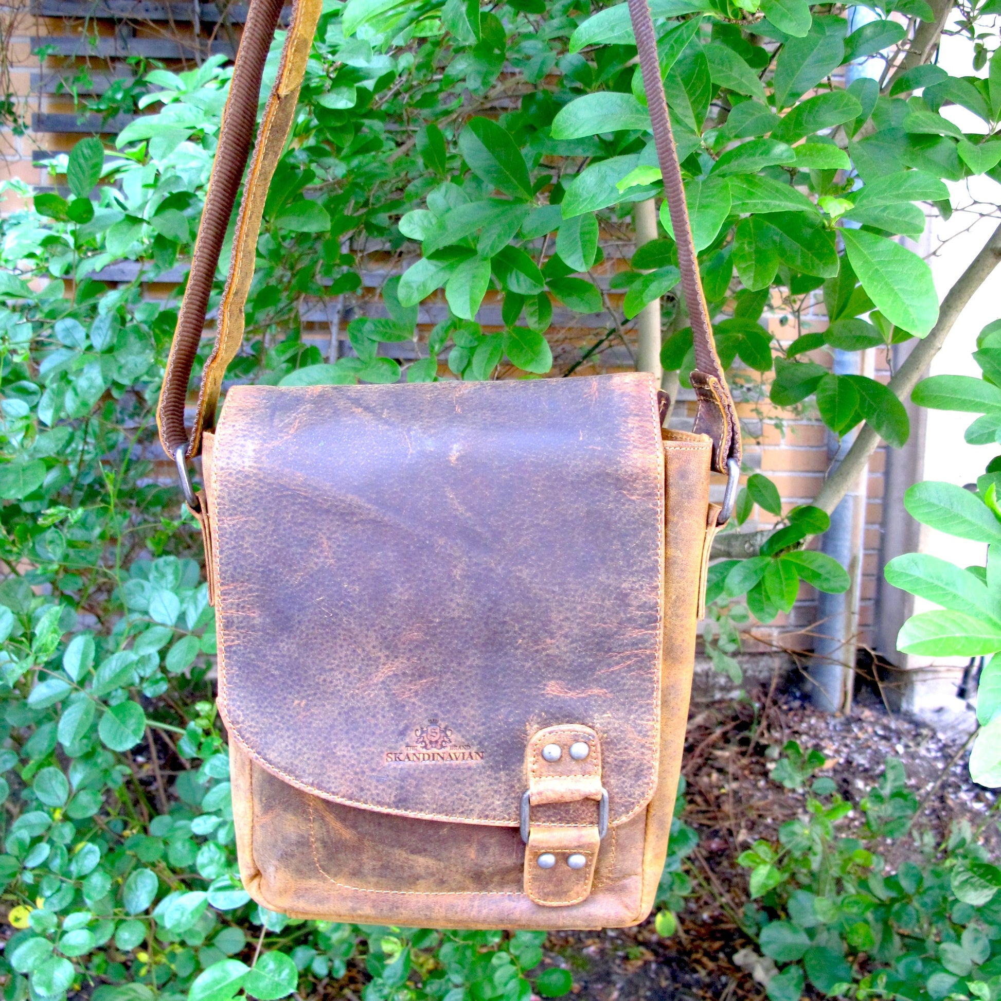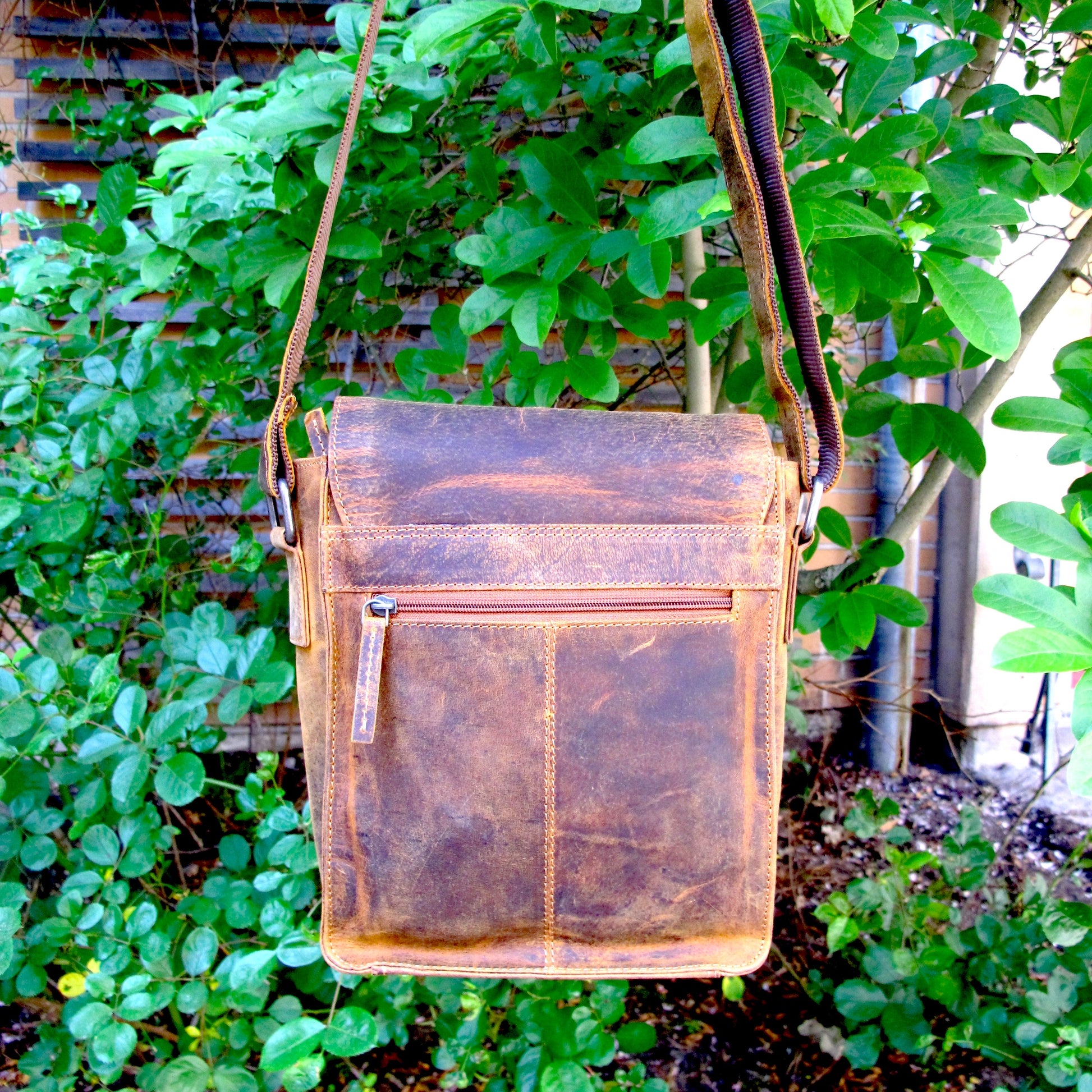Axelrems väska med flera fack inuti samt ett fack med på baksidan med dragkedja.
