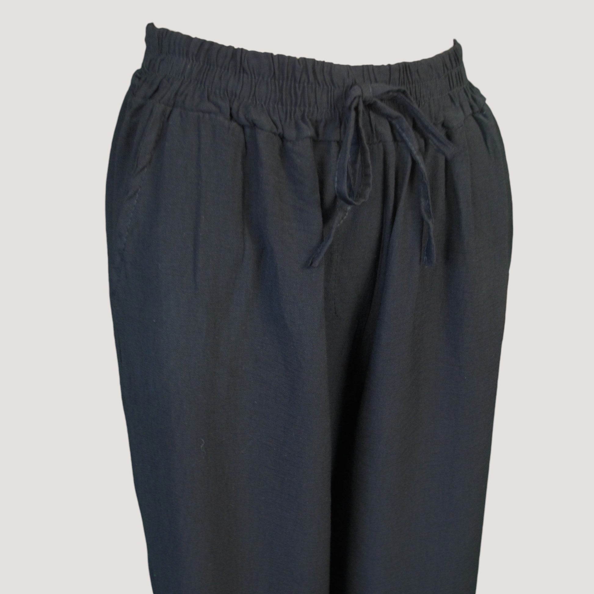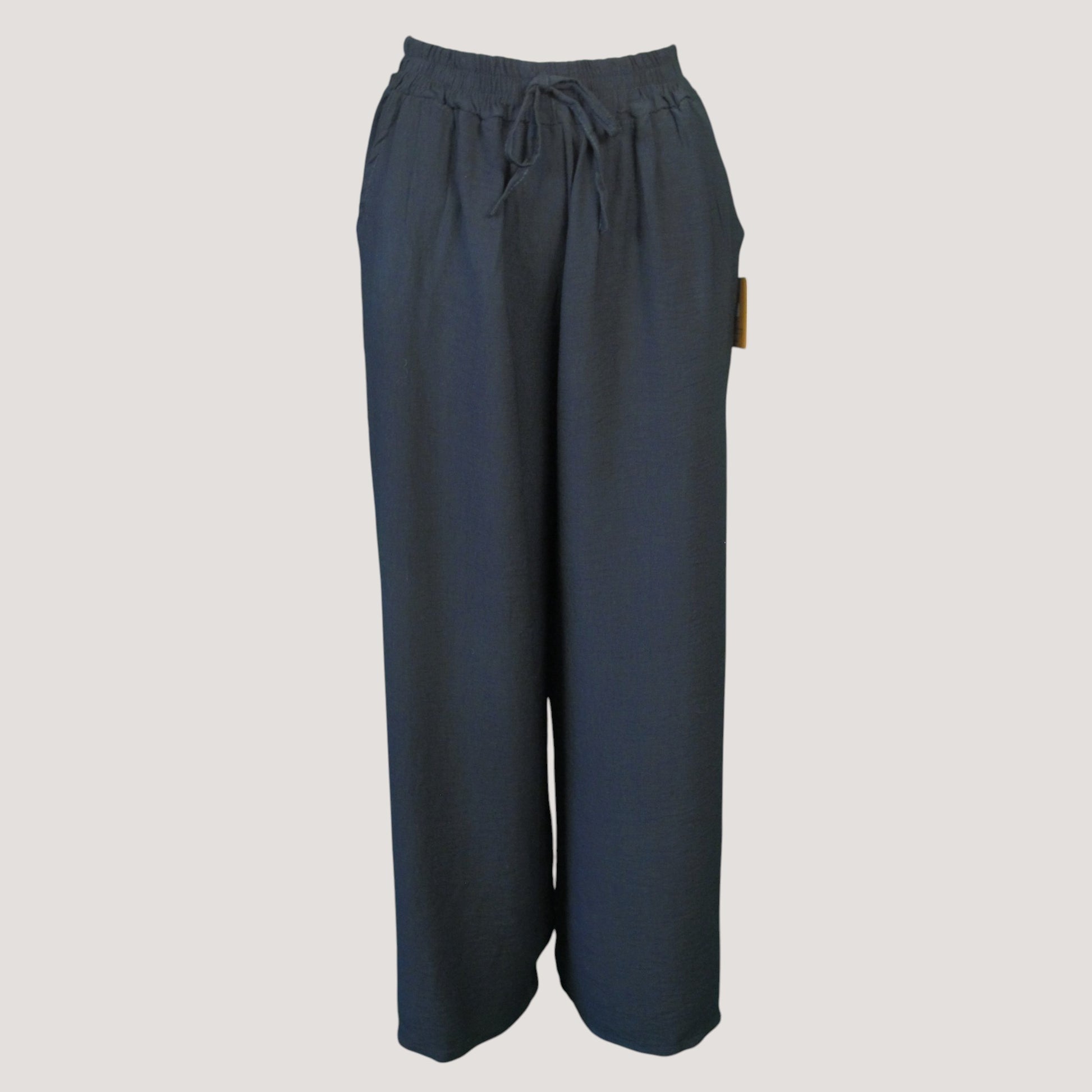 Härlig rak modell i mjuk viskos med fickor och dekorativt knytband fram.