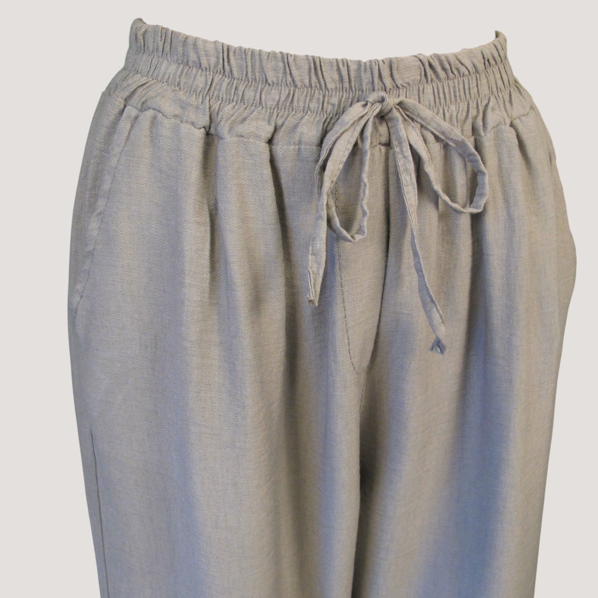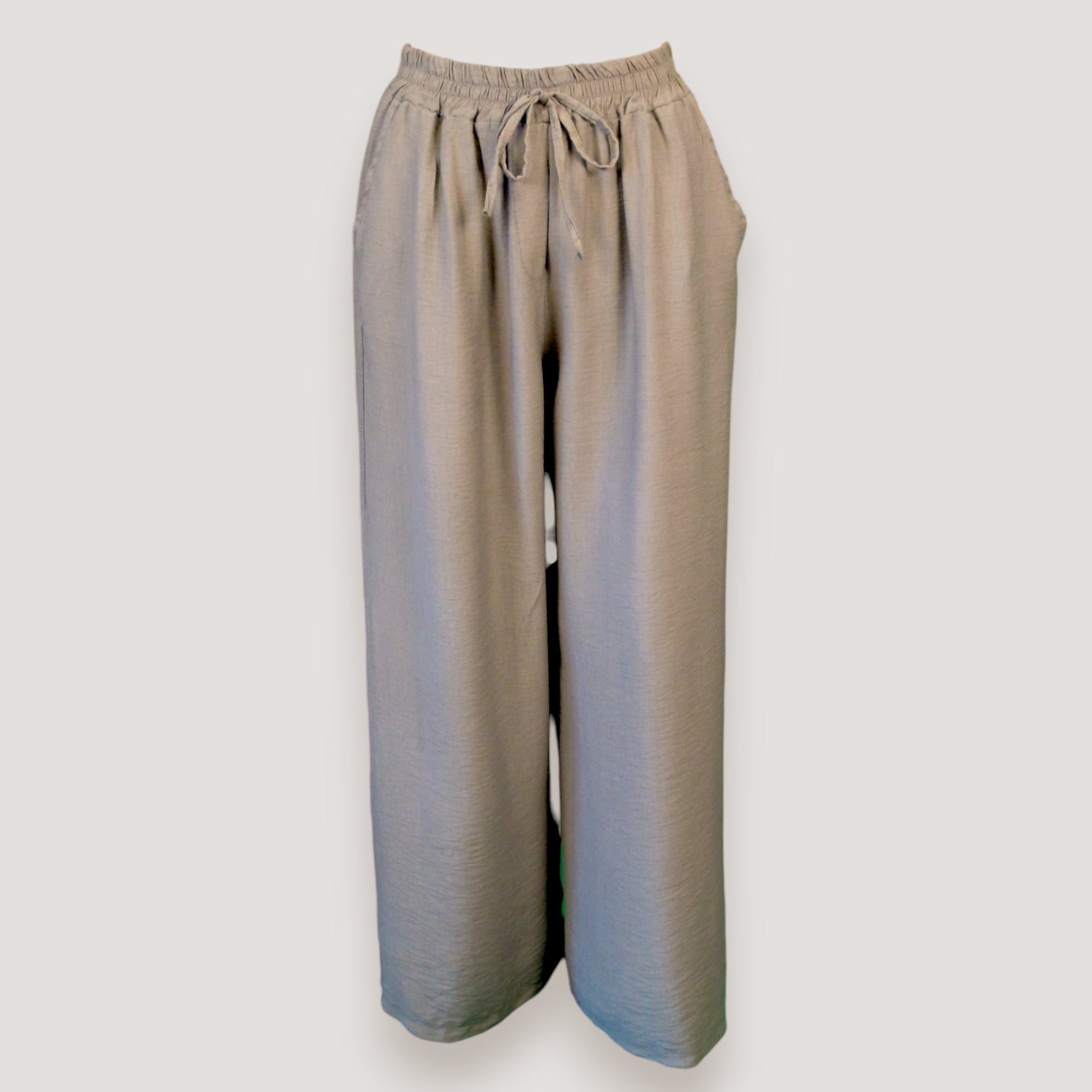 Härlig rak modell i mjuk viskos med fickor och dekorativt knyt band fram.