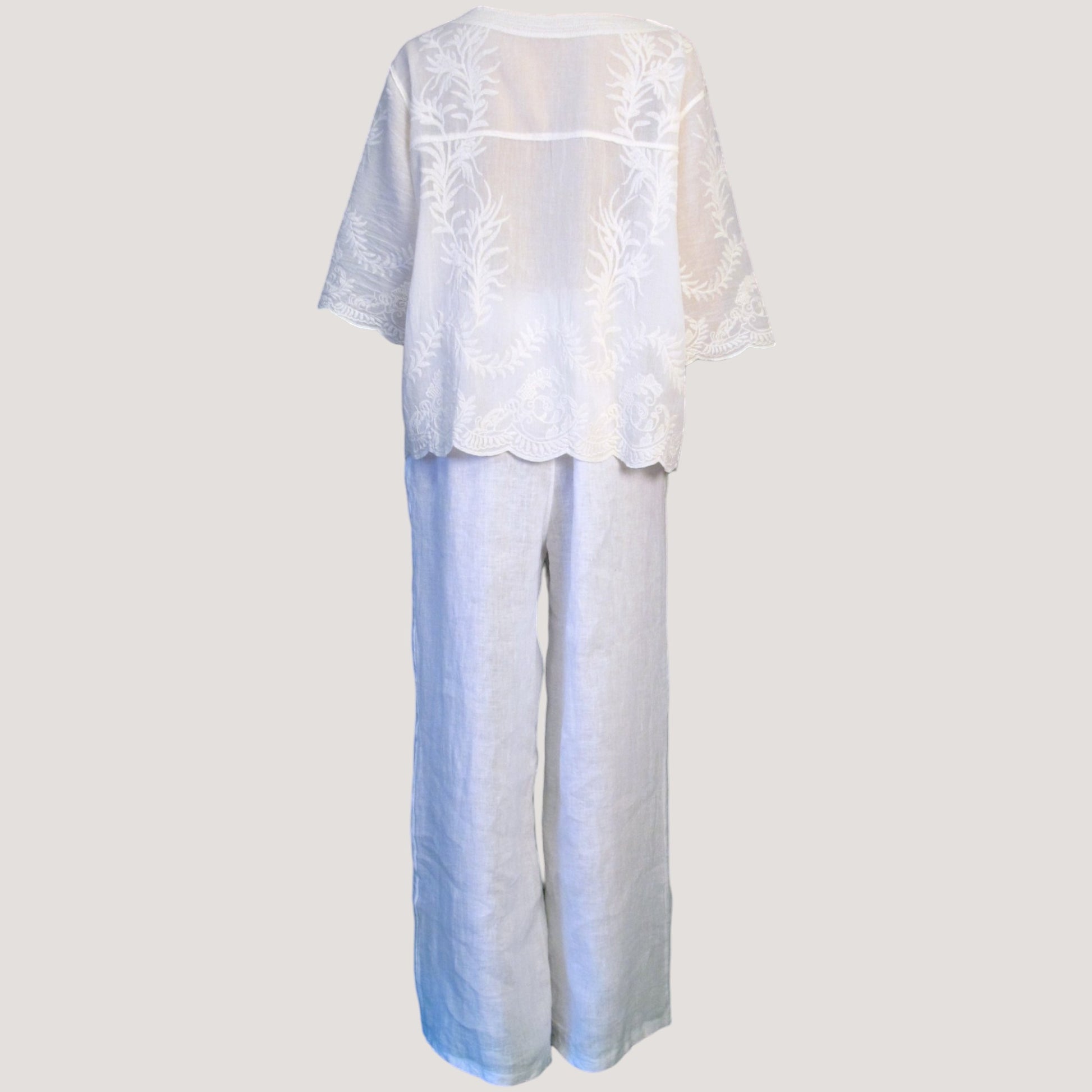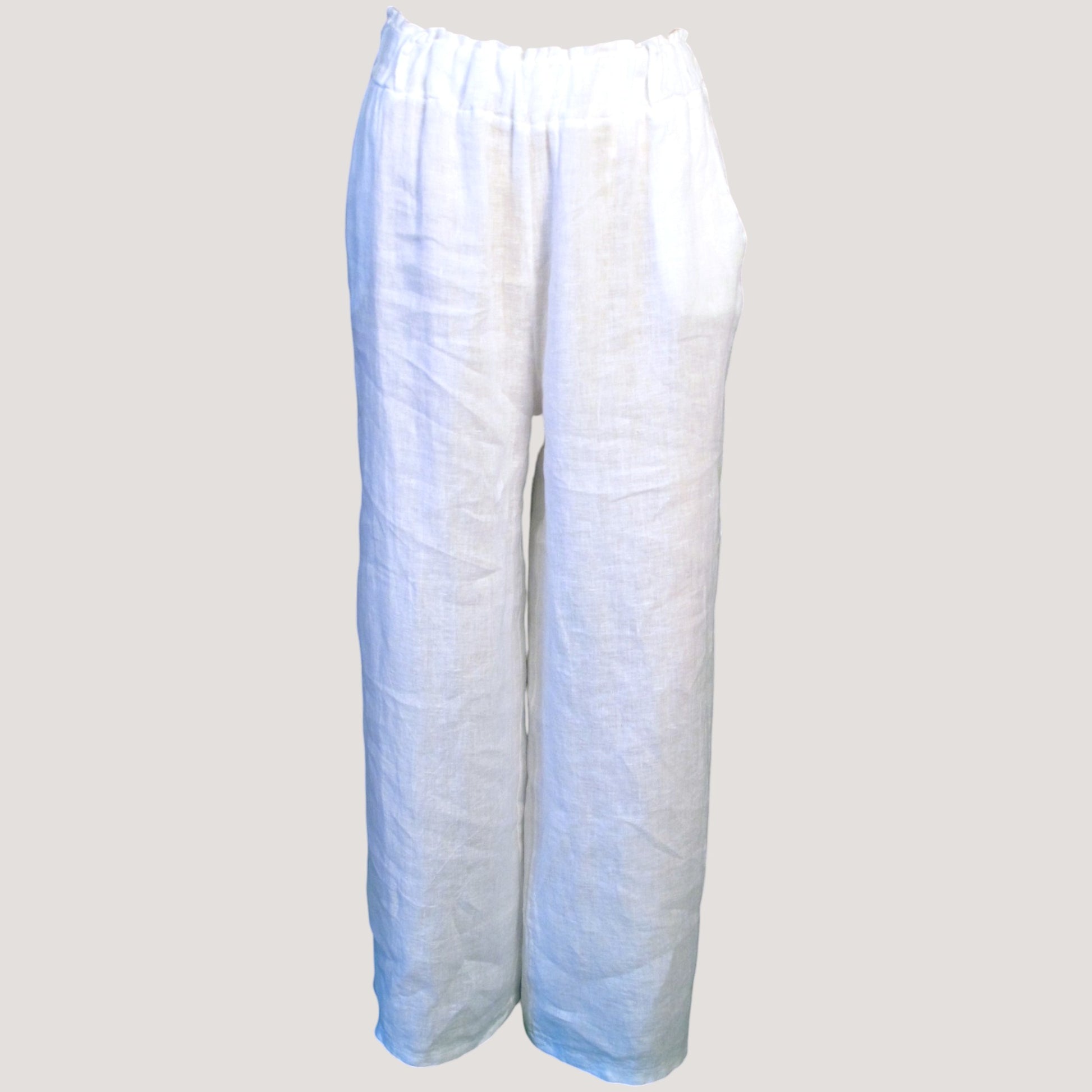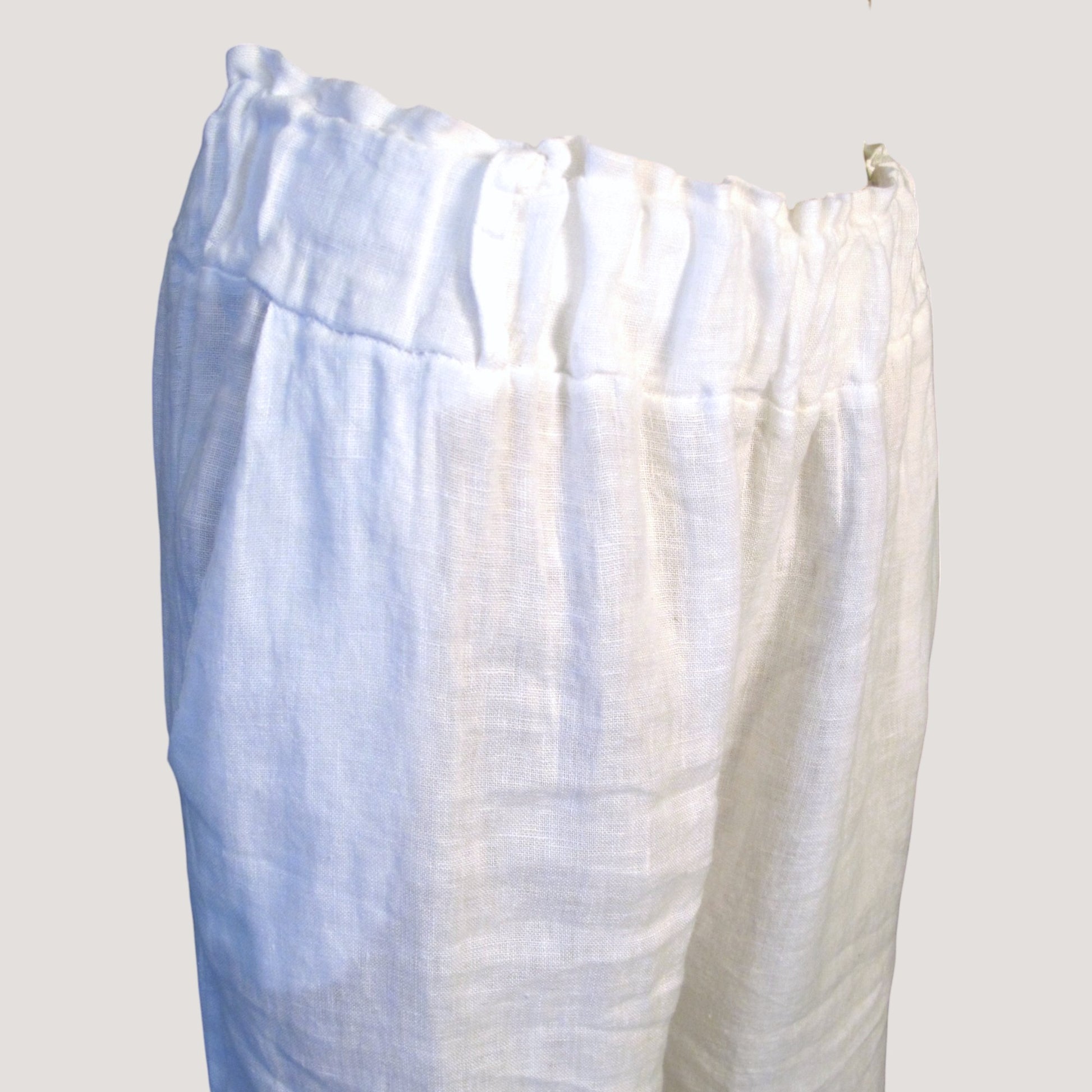 Linne byxa i en rak modell och en lite bredare resår och fickor.