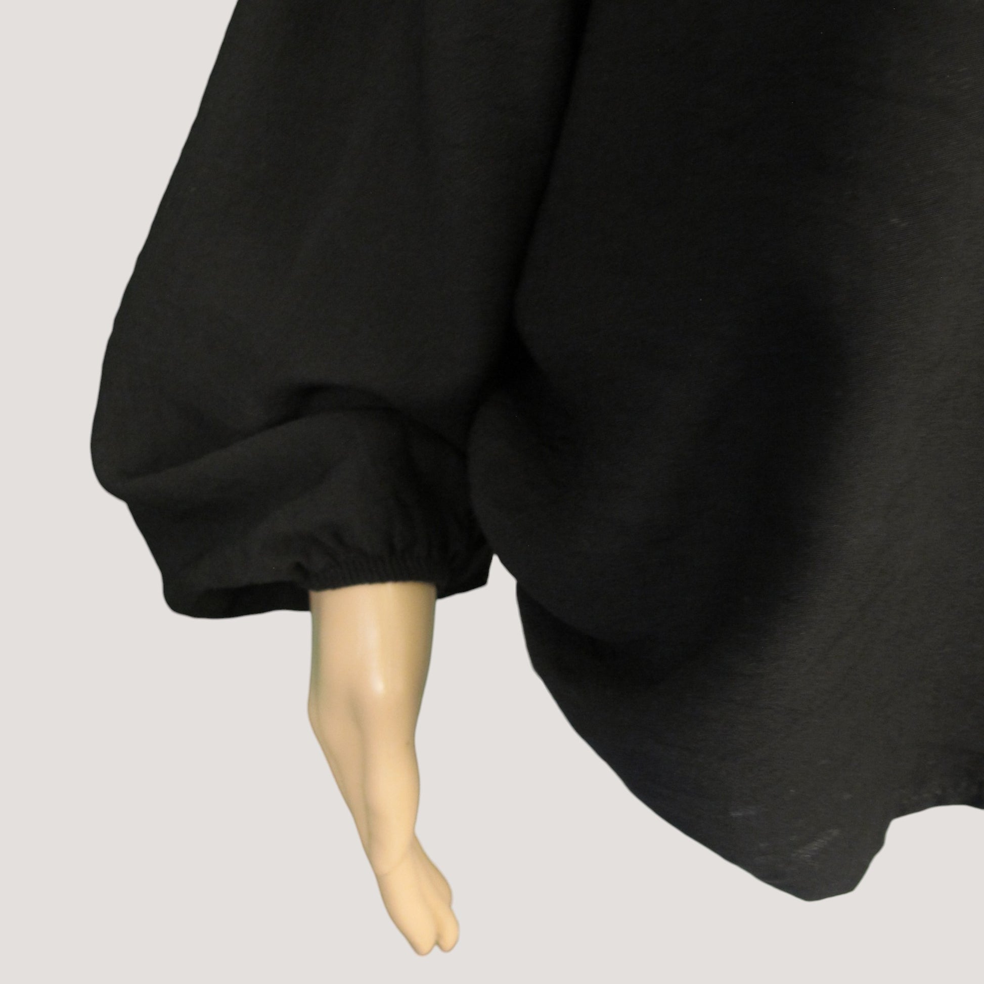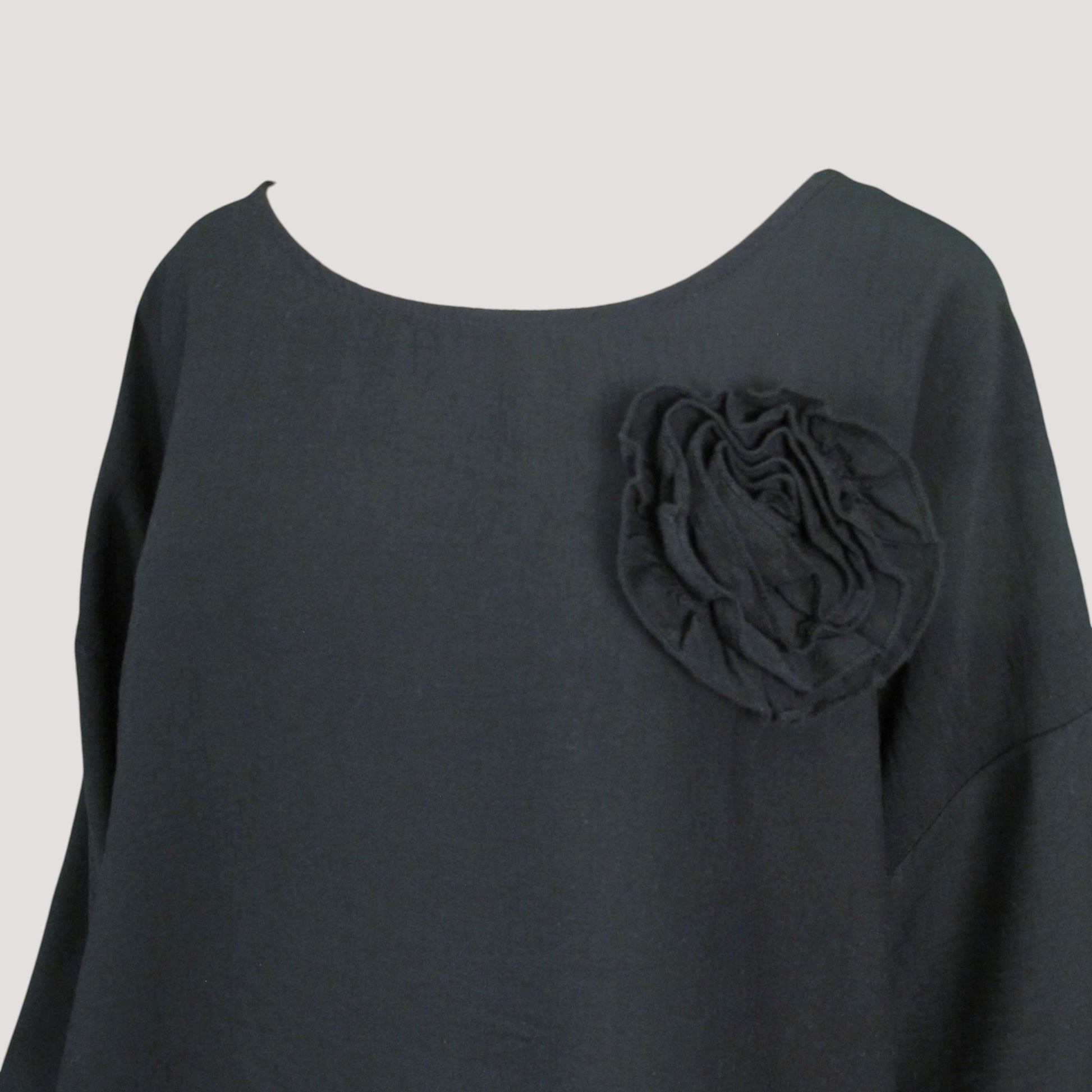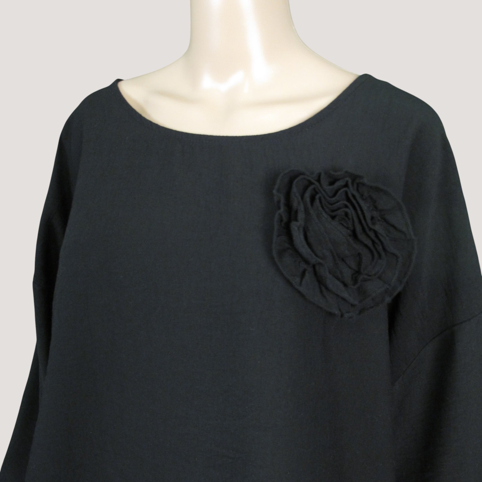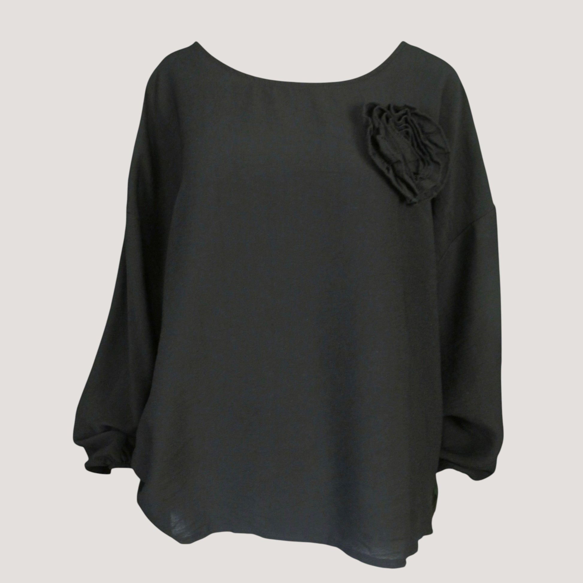 Blus i härligt fallande viskos men blom detalj på bröstet. Resårband i arm slut.