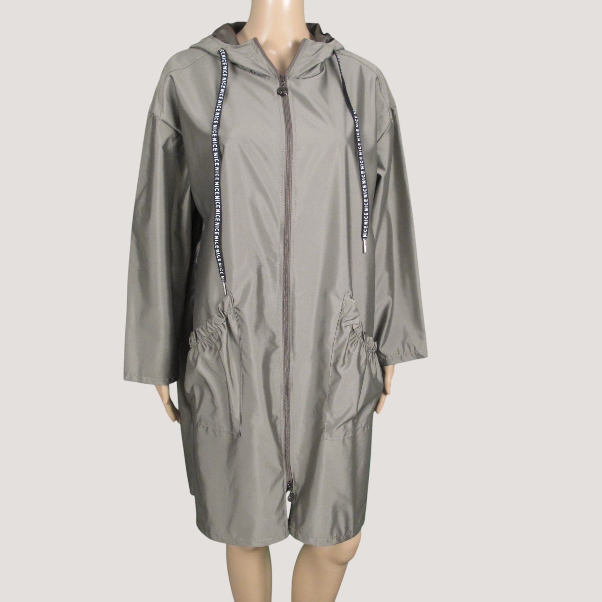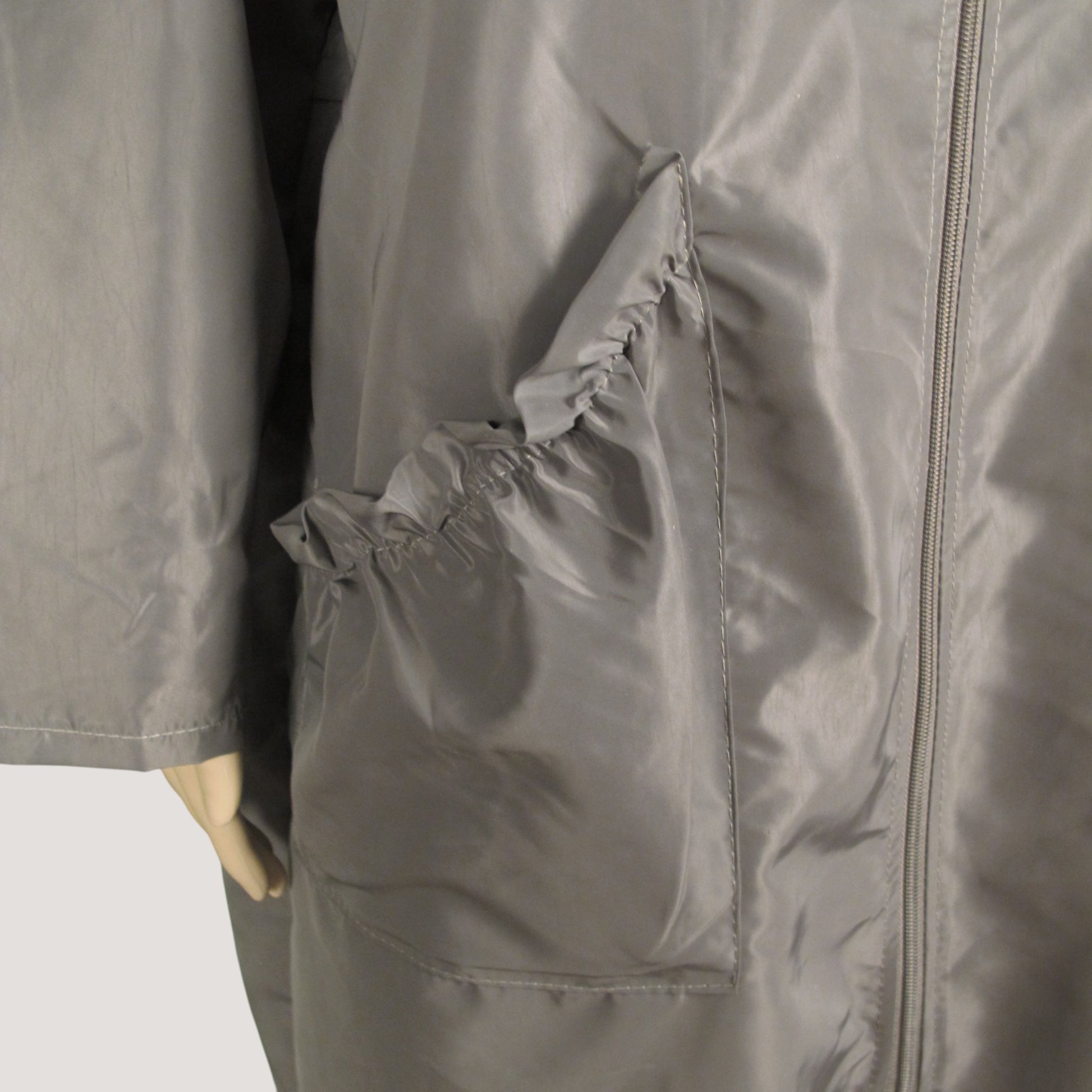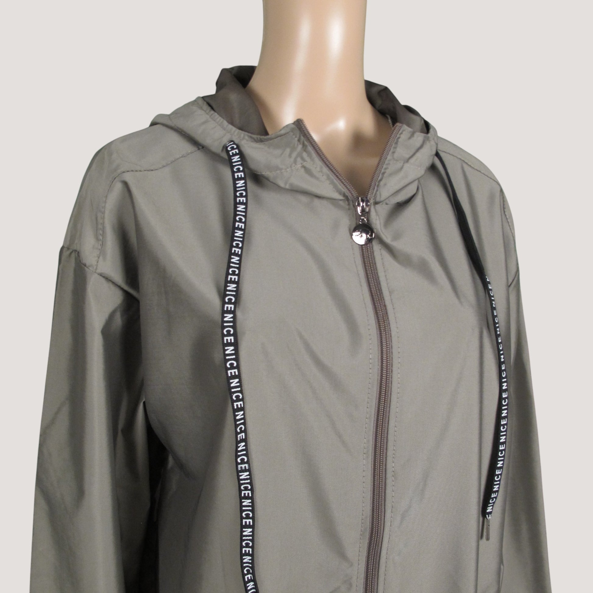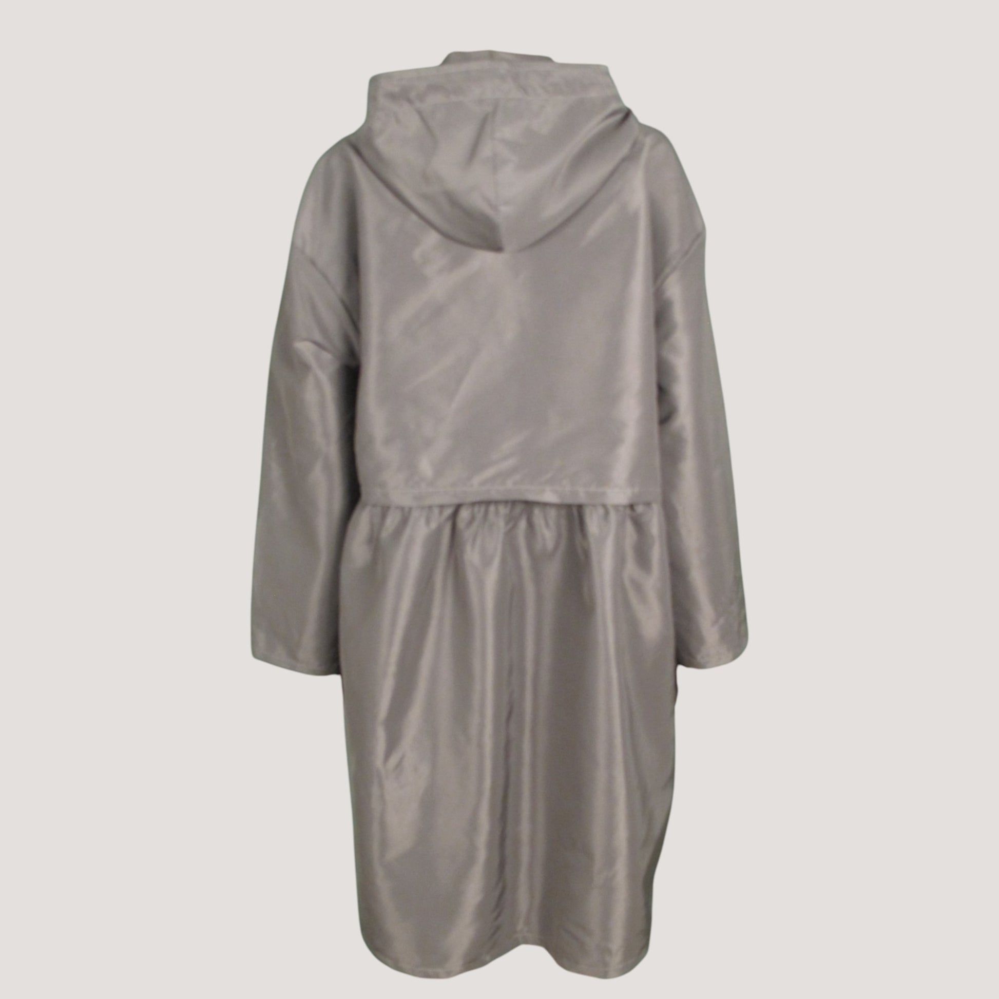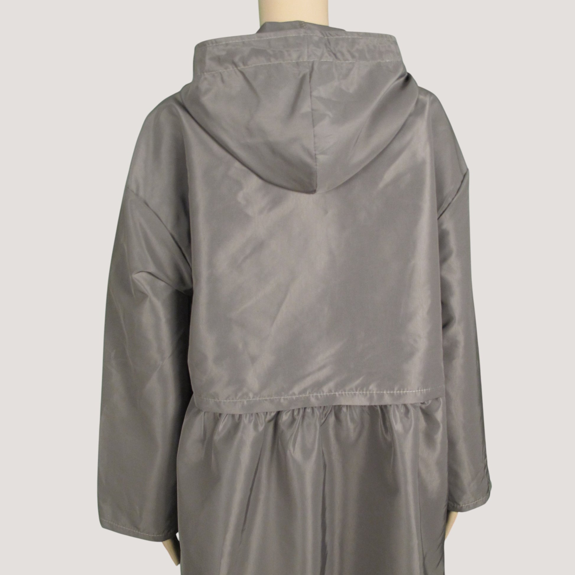 Vind- och vattentät jacka med luva, draperade detaljer vid fickor fram.